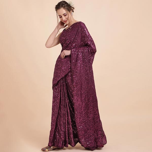 Embellished Sequinned Pure Georgette Saree
