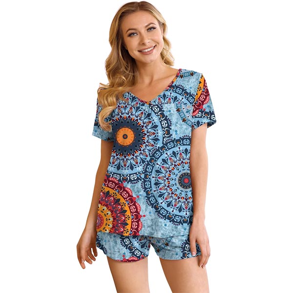 Summer pajamas for women shorts is made stretchy elastic waist desgin to make you comfortable and relaxing.Shorts with side pockets convenient and practical.Special v-neck pleats desgin.