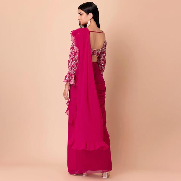 Pink Ruffled Pre-Stitched Saree